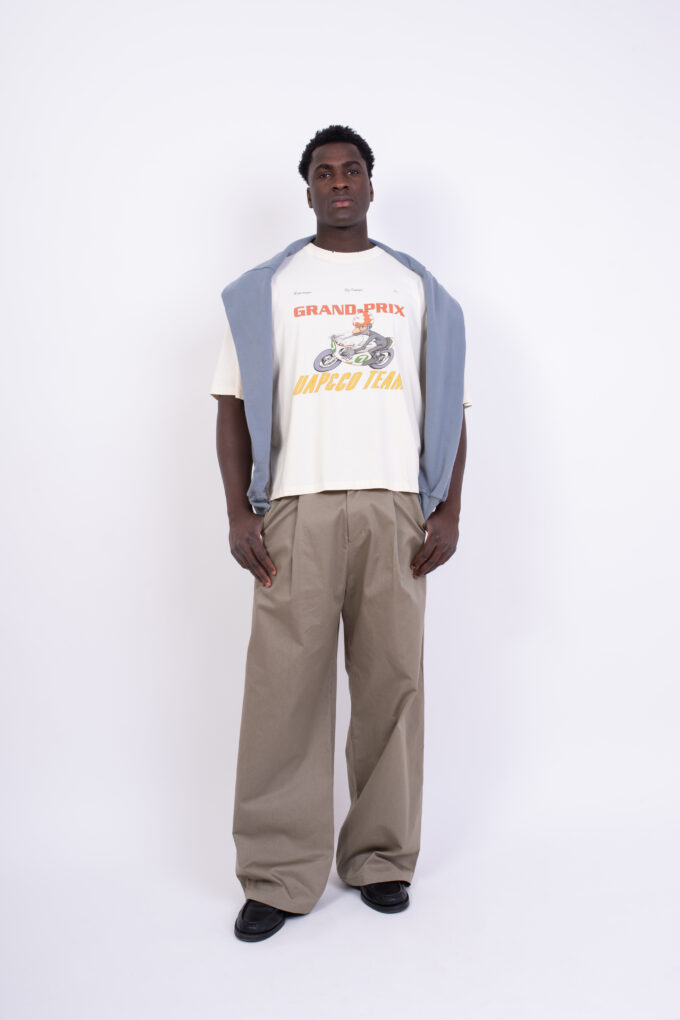 Relaxed fit t-shirt with digital print design on the front, off-white fabric color.